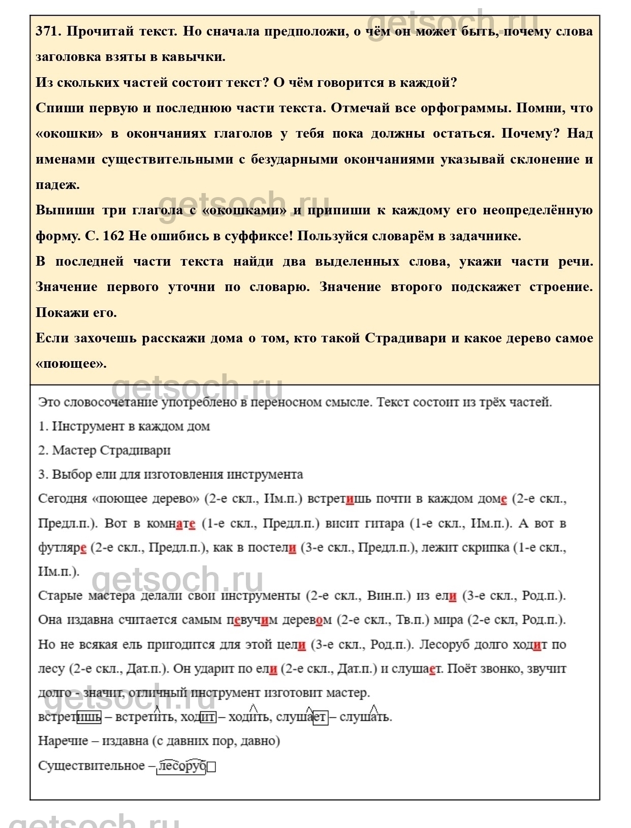 Рассмотрим ответы на Упражнение 371 из учебника по русскому языку для 4 класса Соловейчика