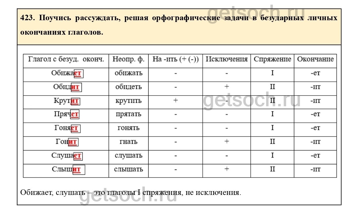 423. Поучись рассуждать, решая орфографические задачи в безударных личных окончаниях глаголов.