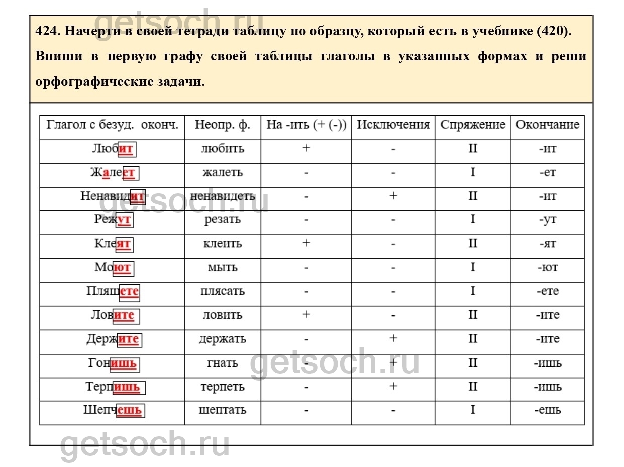 424. Начерти в своей тетради таблицу по образцу, который есть в учебнике (420).