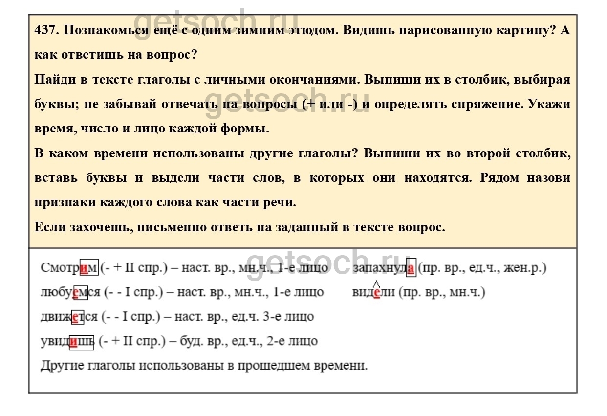Рассмотрим ответы на Упражнение 437 из учебника по русскому языку для 4 класса Соловейчика