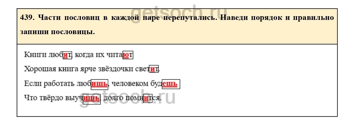 Рассмотрим ответы на Упражнение 439 из учебника по русскому языку для 4 класса Соловейчика