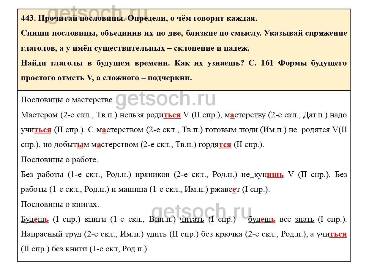Рассмотрим ответы на Упражнение 443 из учебника по русскому языку для 4 класса Соловейчика