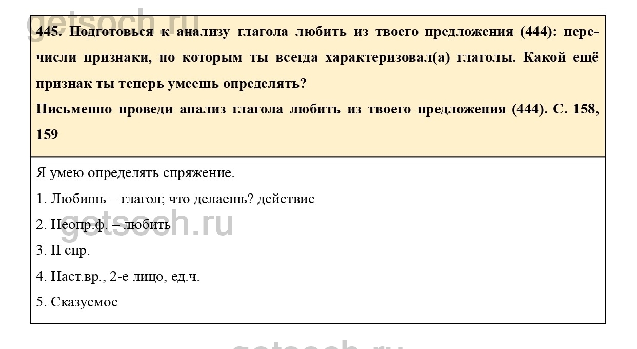 445. Подготовься к анализу глагола любить из твоего предложения (444): пере- числи признаки, по которым ты всегда характеризовал(а) глаголы. Какой ещё признак ты теперь умеешь определять?