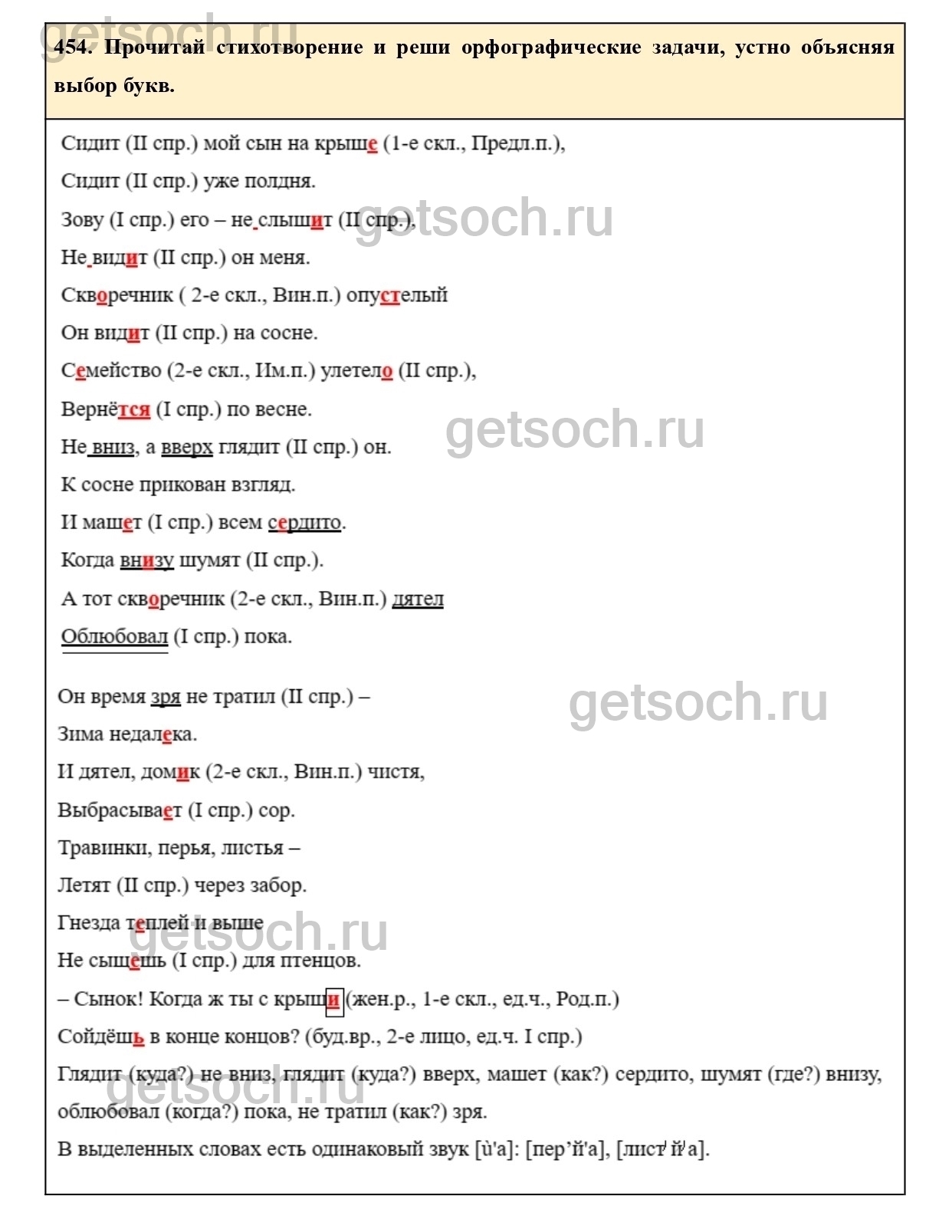 Рассмотрим ответы на Упражнение 454 из учебника по русскому языку для 4 класса Соловейчика