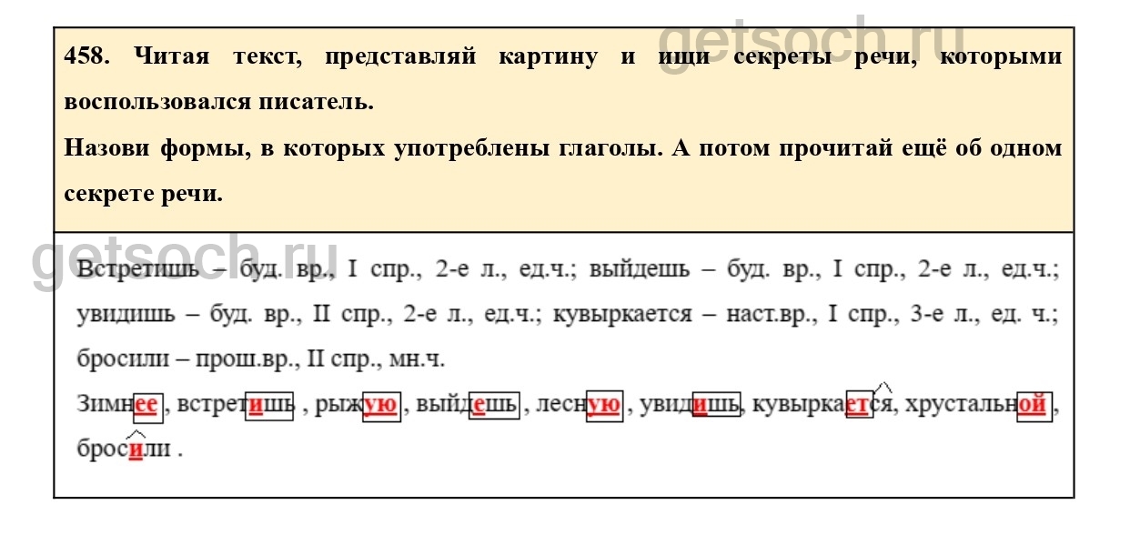 Рассмотрим ответы на Упражнение 458 из учебника по русскому языку для 4 класса Соловейчика