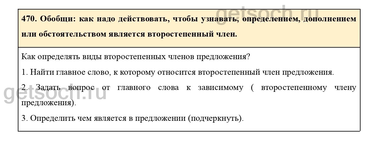 470. Обобщи: как надо действовать, чтобы узнавать, определением, дополнением или обстоятельством является второстепенный член.