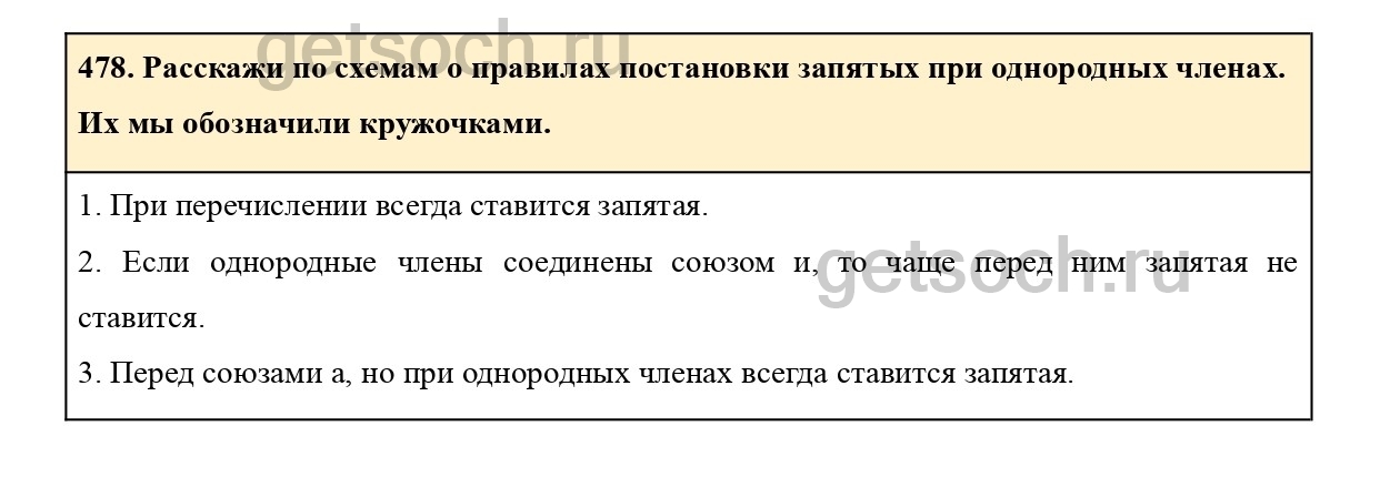 478. Расскажи по схемам о правилах постановки запятых при однородных членах.