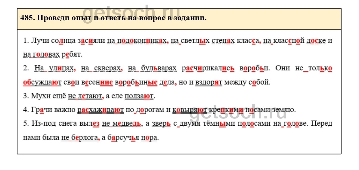 Рассмотрим ответы на Упражнение 485 из учебника по русскому языку для 4 класса Соловейчика