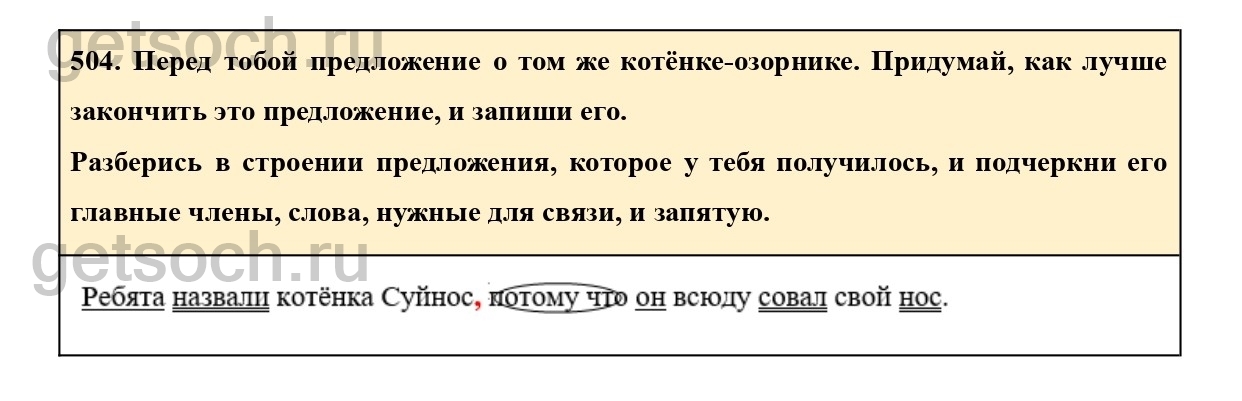 504. Перед тобой предложение о том же котёнке-озорнике. Придумай, как лучше закончить это предложение, и запиши его.