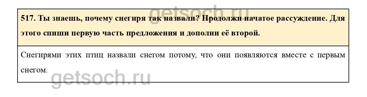 517. Ты знаешь, почему снегиря так назвали? Продолжи начатое рассуждение. Для этого спиши первую часть предложения и дополни её второй.