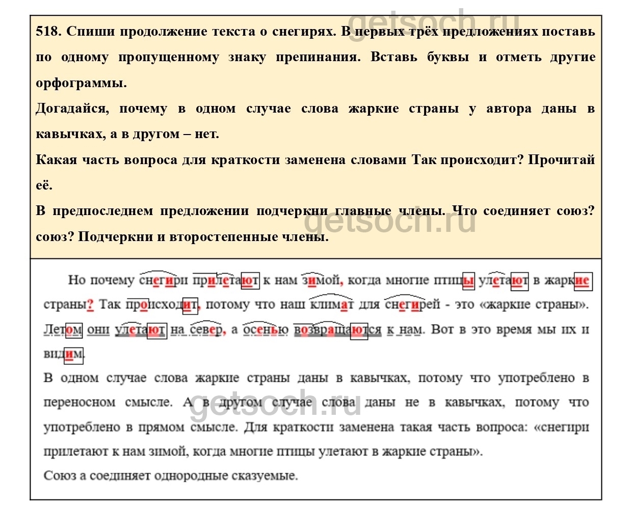 Рассмотрим ответы на Упражнение 518 из учебника по русскому языку для 4 класса Соловейчика