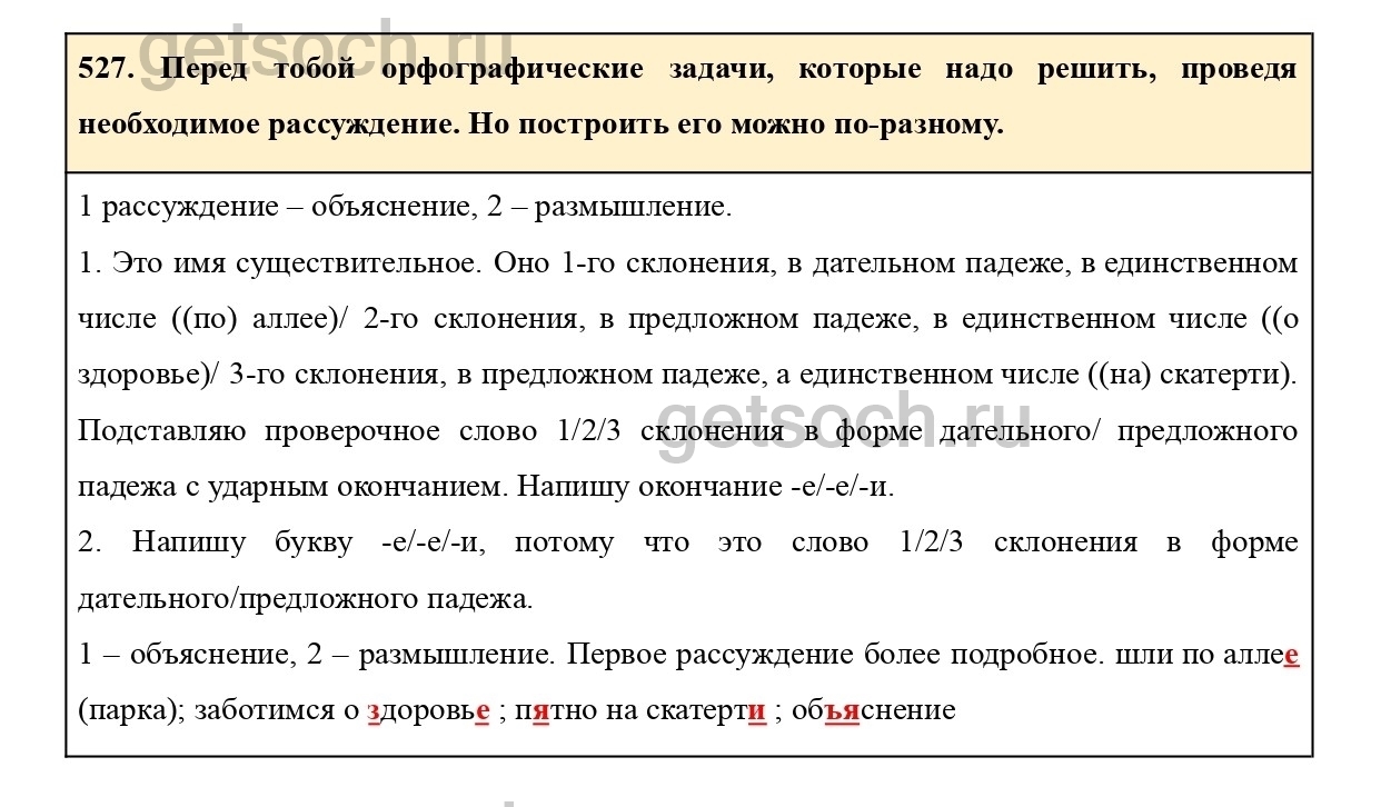 527. Перед тобой орфографические задачи, которые надо решить, проведя необходимое рассуждение. Но построить его можно по-разному.