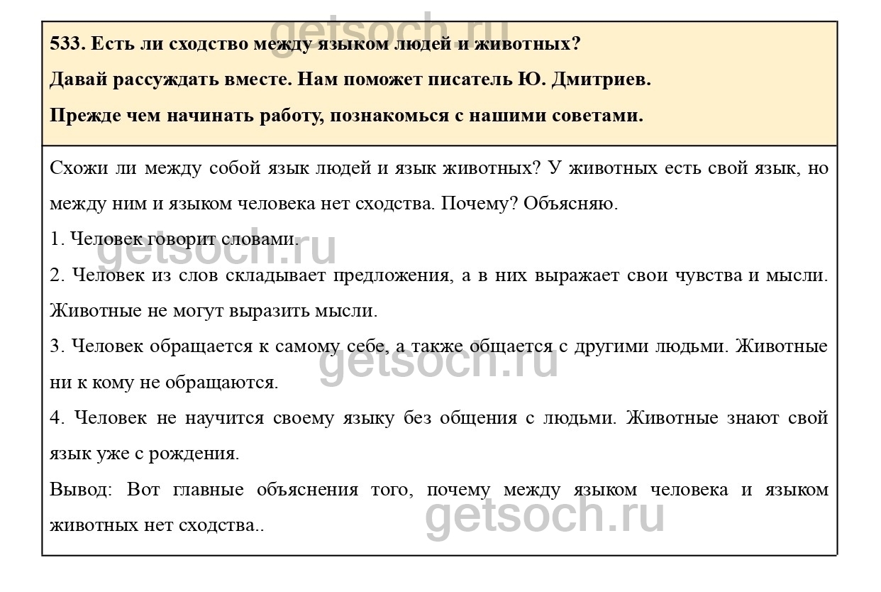 Рассмотрим ответы на Упражнение 533 из учебника по русскому языку для 4 класса Соловейчика