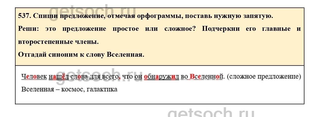 Рассмотрим ответы на Упражнение 537 из учебника по русскому языку для 4 класса Соловейчика