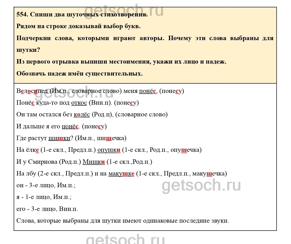 Рассмотрим ответы на Упражнение 554 из учебника по русскому языку для 4 класса Соловейчика