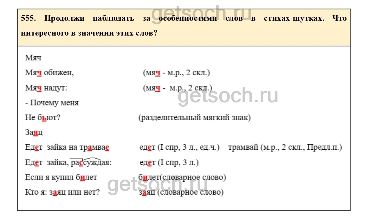 Рассмотрим ответы на Упражнение 555 из учебника по русскому языку для 4 класса Соловейчика