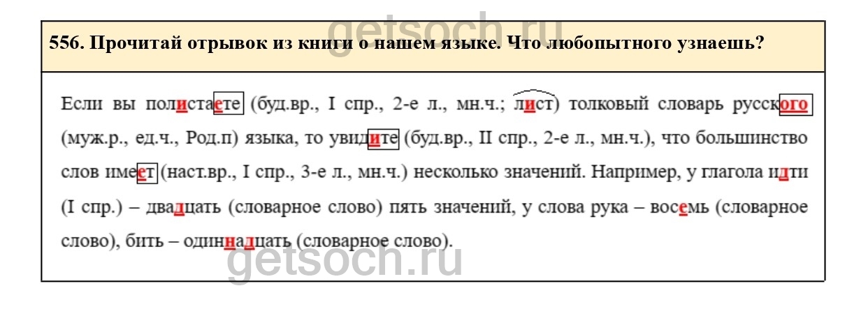 Рассмотрим ответы на Упражнение 556 из учебника по русскому языку для 4 класса Соловейчика
