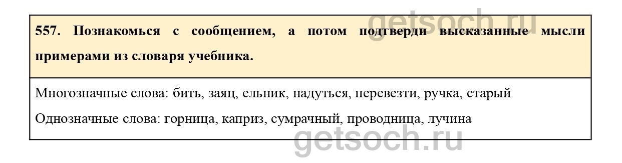 557. Познакомься с сообщением, а потом подтверди высказанные мысли примерами из словаря учебника.
