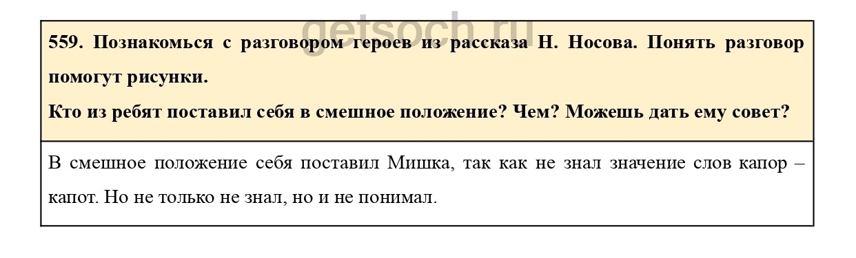 559. Познакомься с разговором героев из рассказа Н. Носова. Понять разговор помогут рисунки.