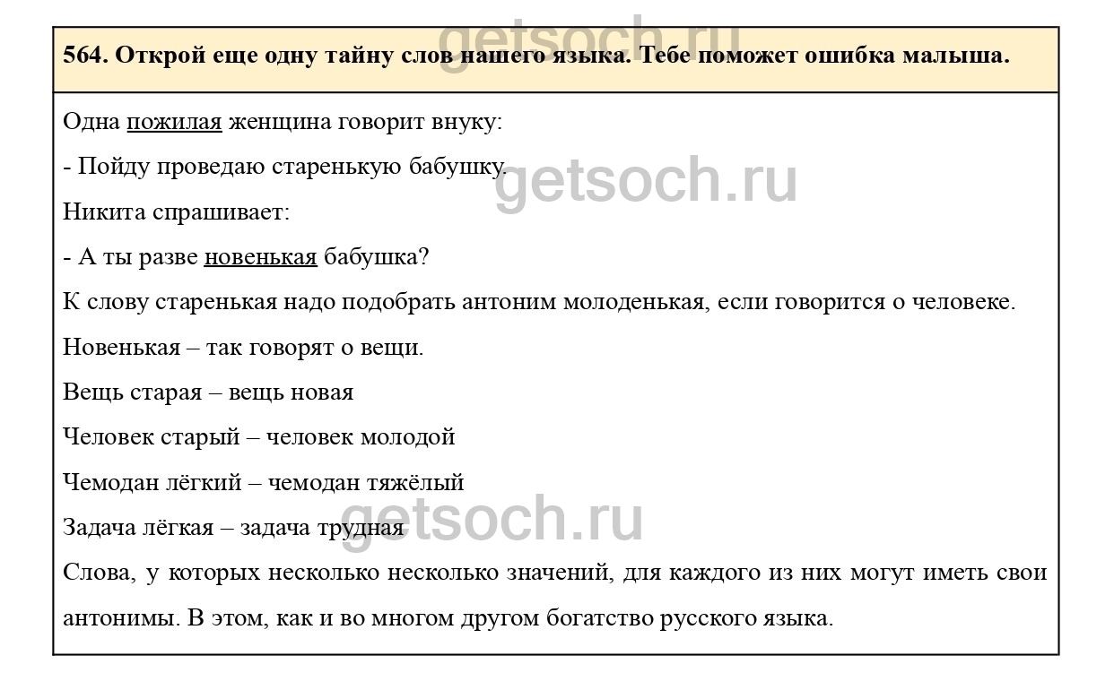 Рассмотрим ответы на Упражнение 564 из учебника по русскому языку для 4 класса Соловейчика