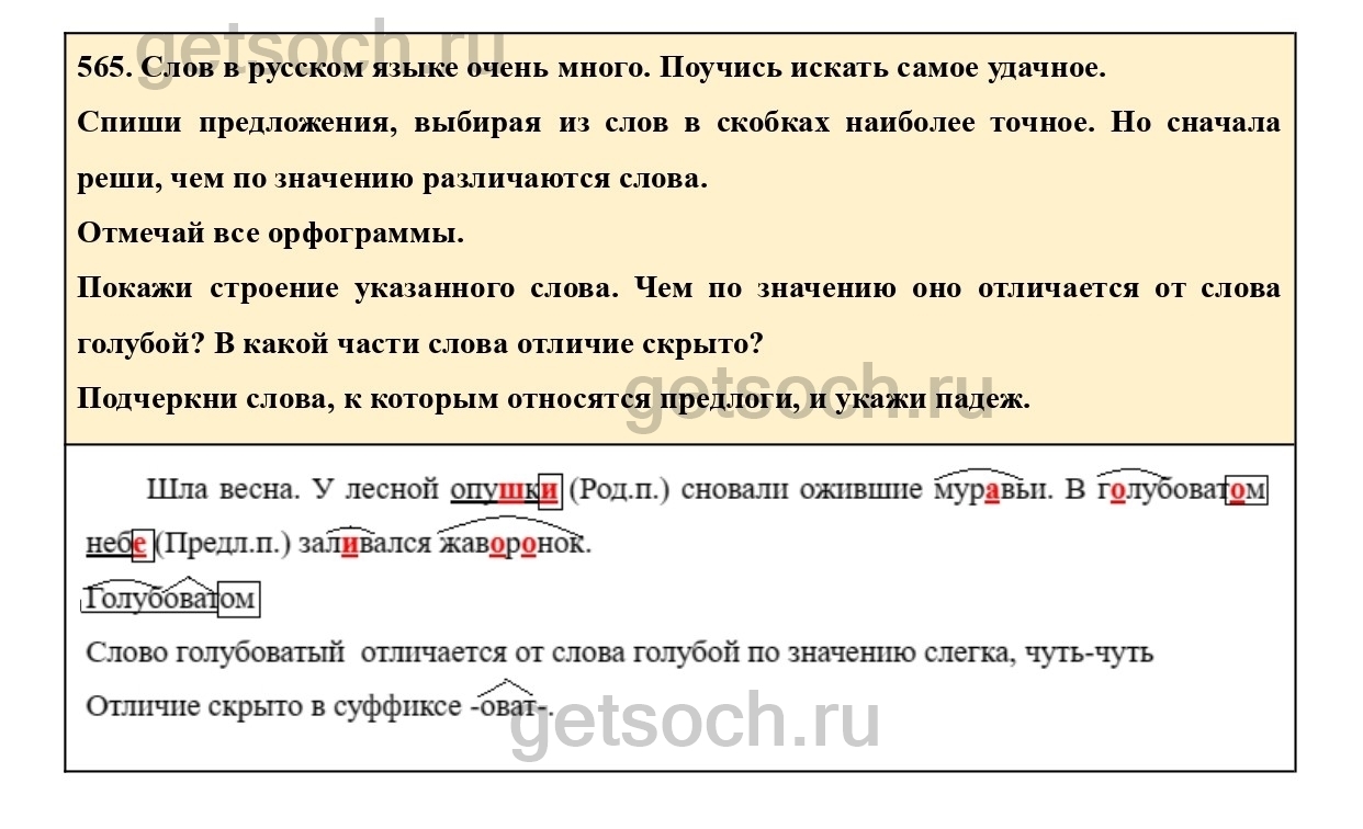 Рассмотрим ответы на Упражнение 565 из учебника по русскому языку для 4 класса Соловейчика