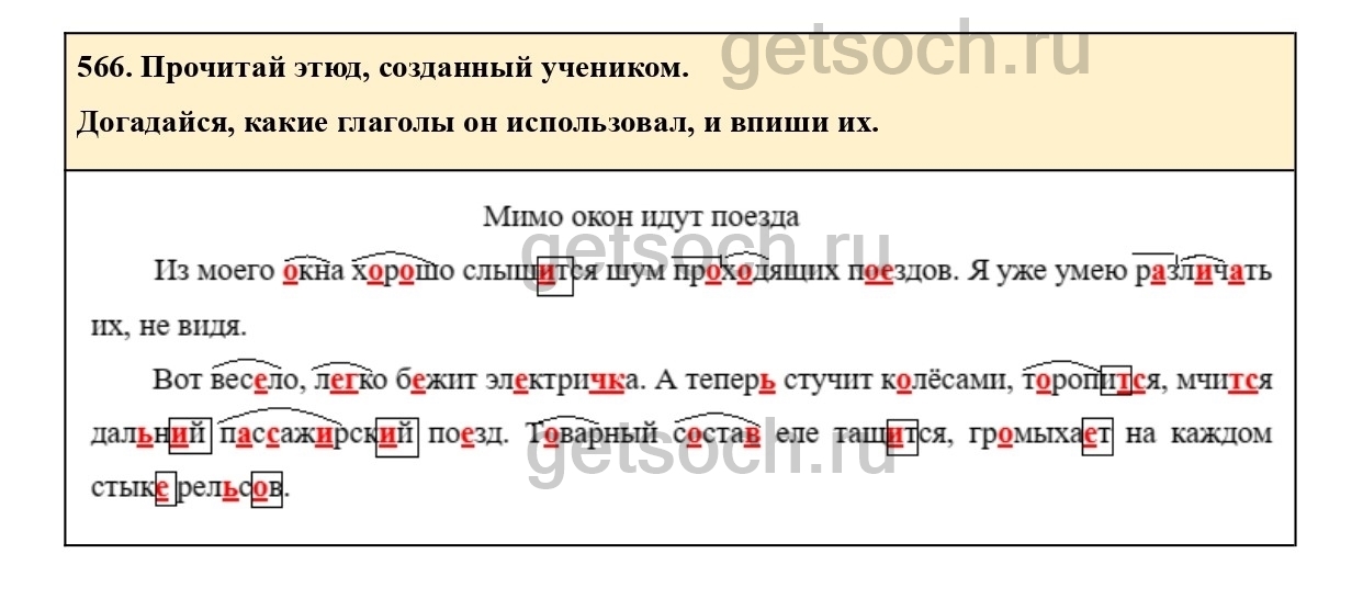 Рассмотрим ответы на Упражнение 566 из учебника по русскому языку для 4 класса Соловейчика