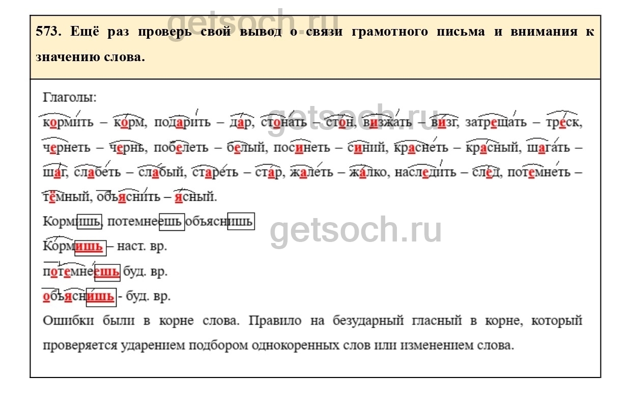 Рассмотрим ответы на Упражнение 573 из учебника по русскому языку для 4 класса Соловейчика