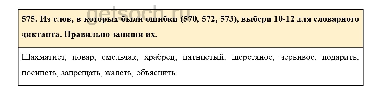 575. Из слов, в которых были ошибки (570, 572, 573), выбери 10-12 для словарного диктанта. Правильно запиши их.