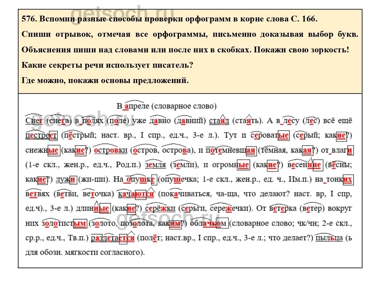 Рассмотрим ответы на Упражнение 576 из учебника по русскому языку для 4 класса Соловейчика