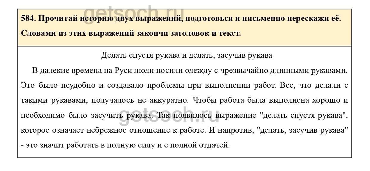584. Прочитай историю двух выражений, подготовься и письменно перескажи её.