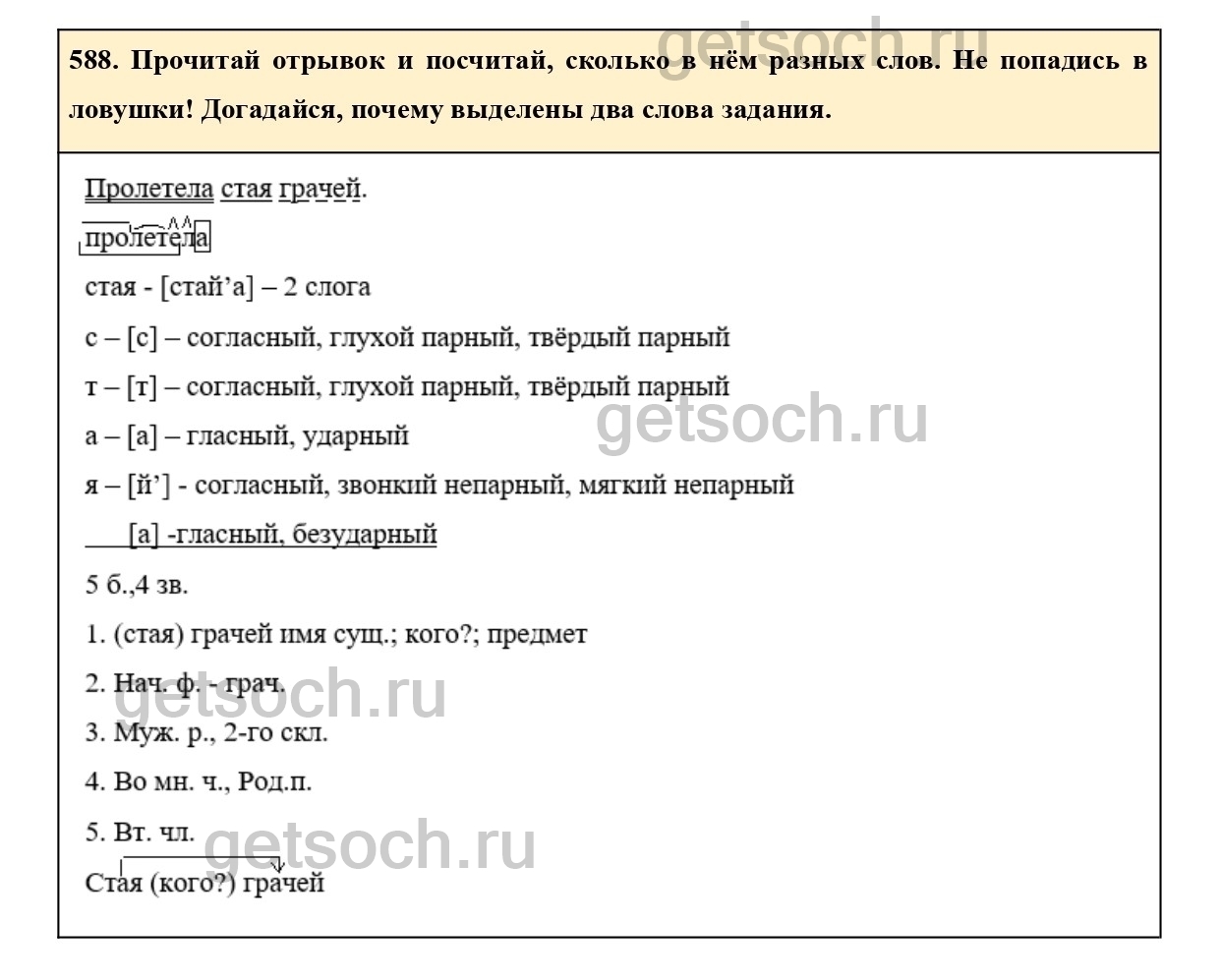 588. Прочитай отрывок и посчитай, сколько в нём разных слов. Не попадись в ловушки! Догадайся, почему выделены два слова задания.