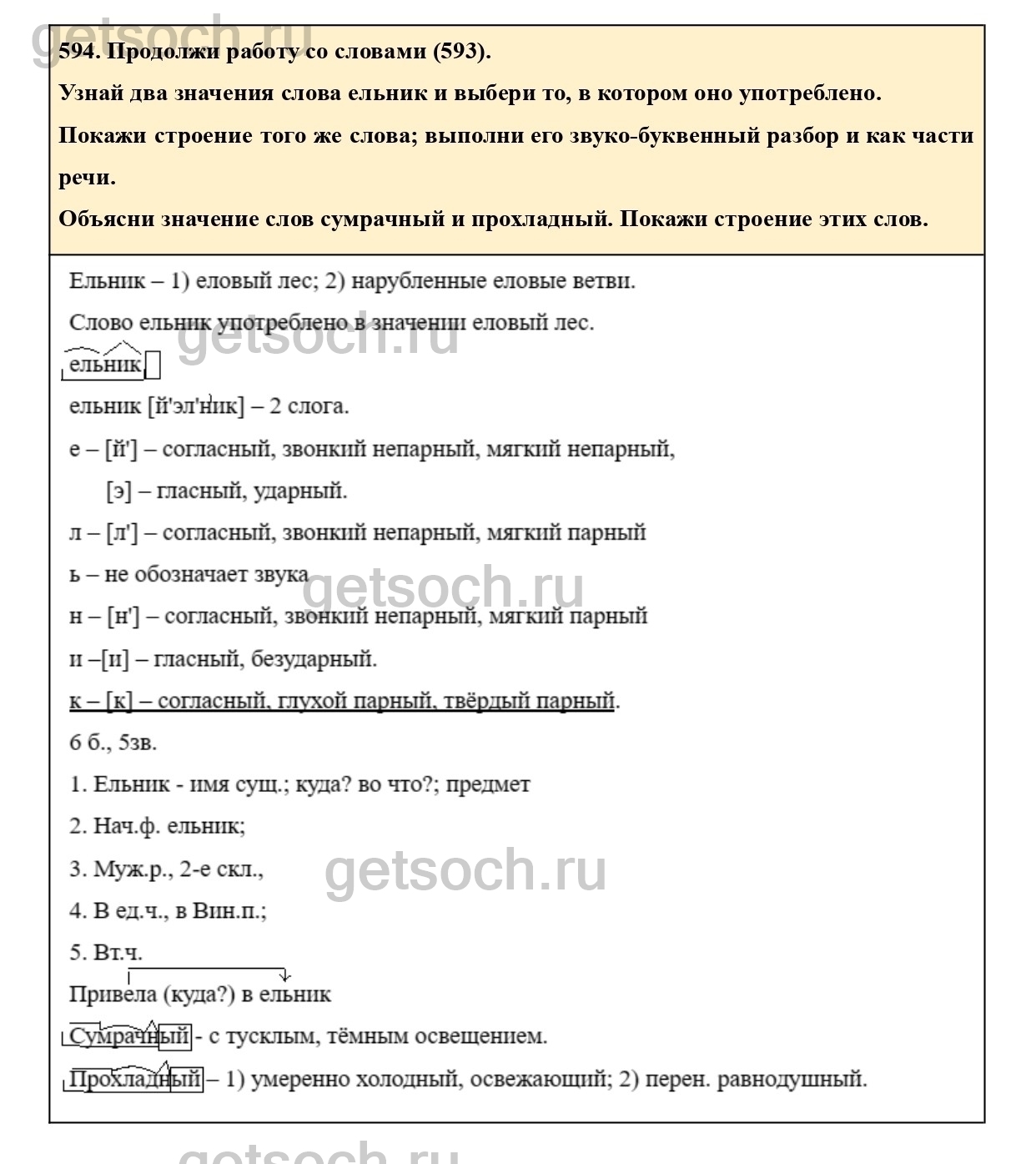 Рассмотрим ответы на Упражнение 594 из учебника по русскому языку для 4 класса Соловейчика