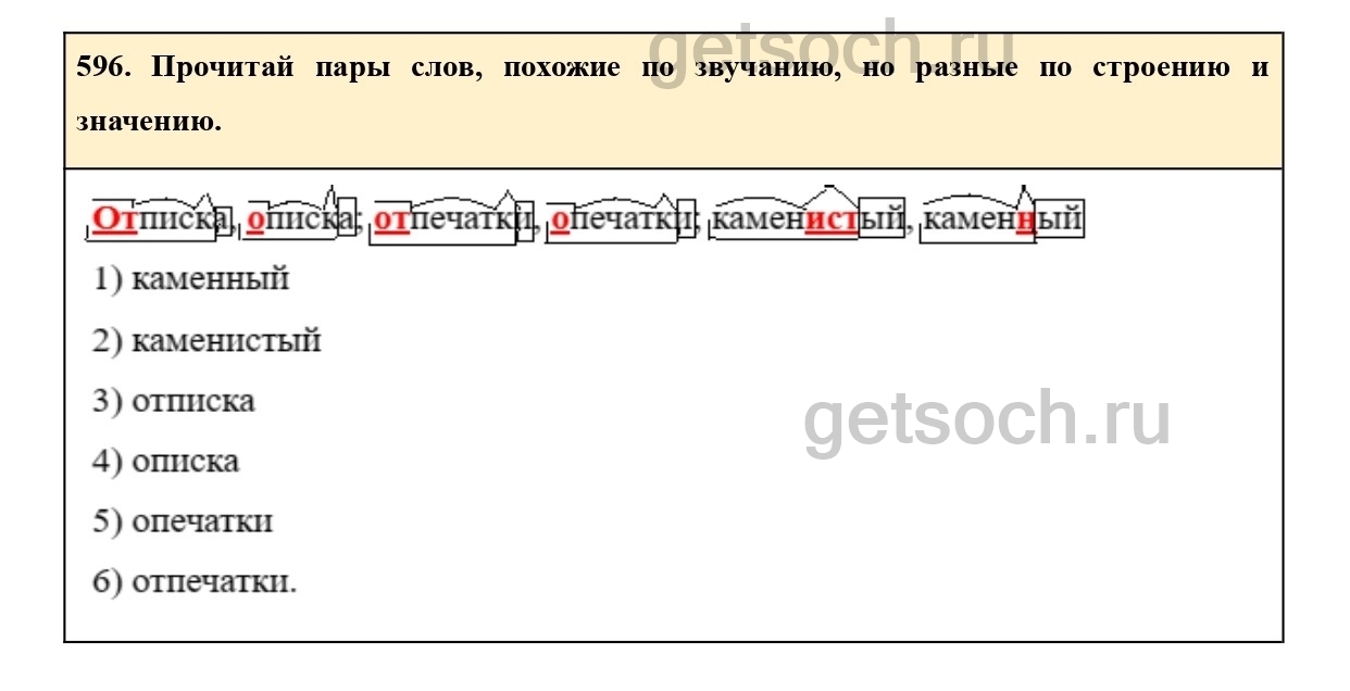 596. Прочитай пары слов, похожие по звучанию, но разные по строению и значению.