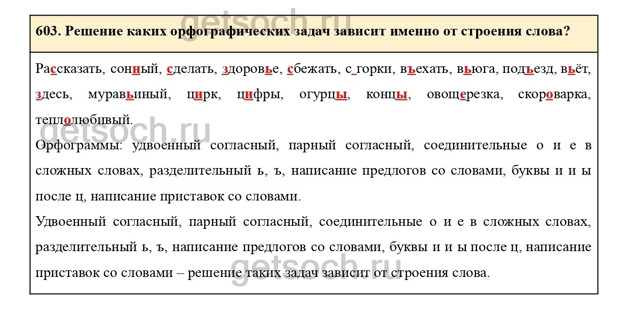 603. Решение каких орфографических задач зависит именно от строения слова?