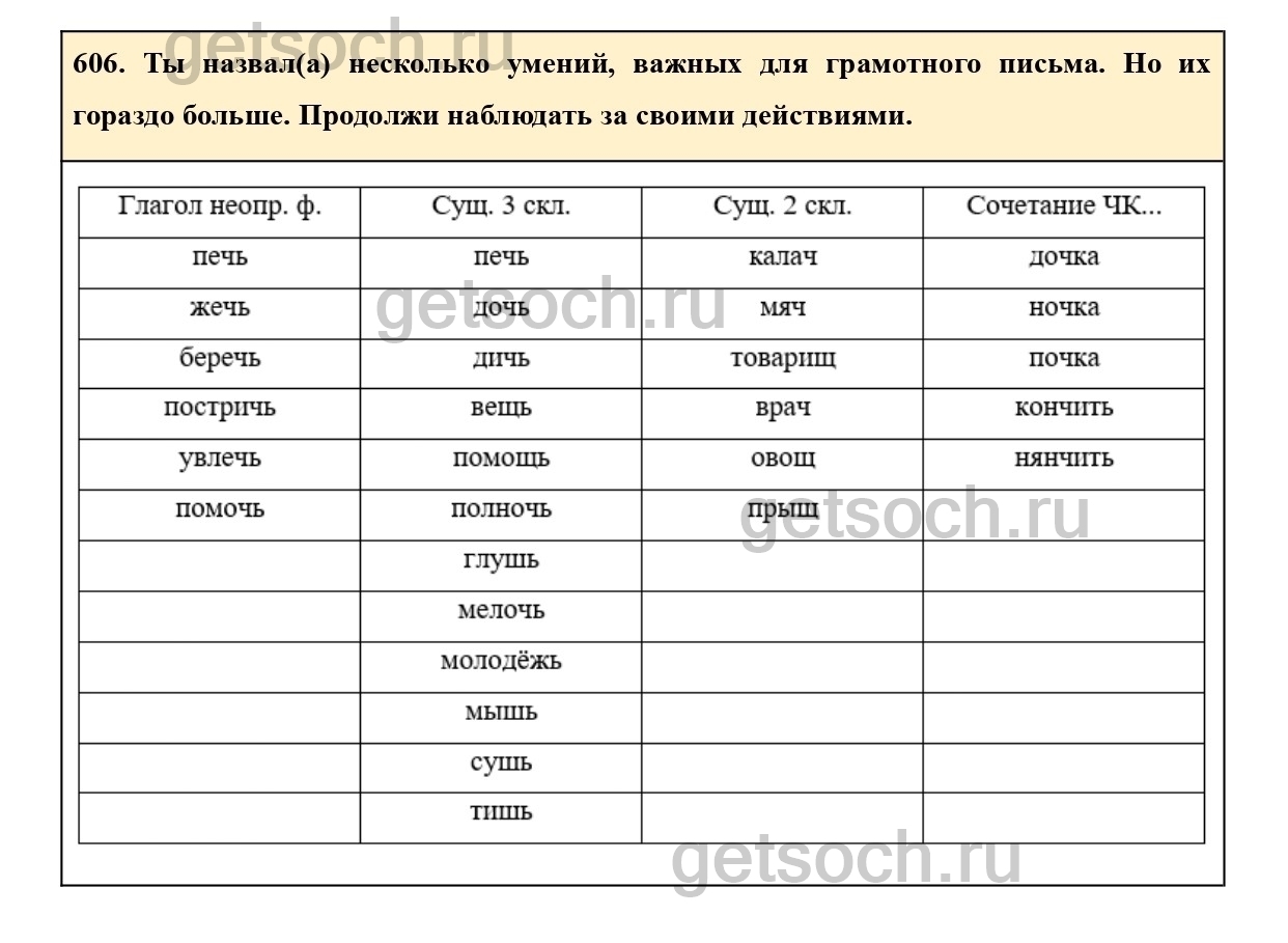 606. Ты назвал(а) несколько умений, важных для грамотного письма. Но их гораздо больше. Продолжи наблюдать за своими действиями.