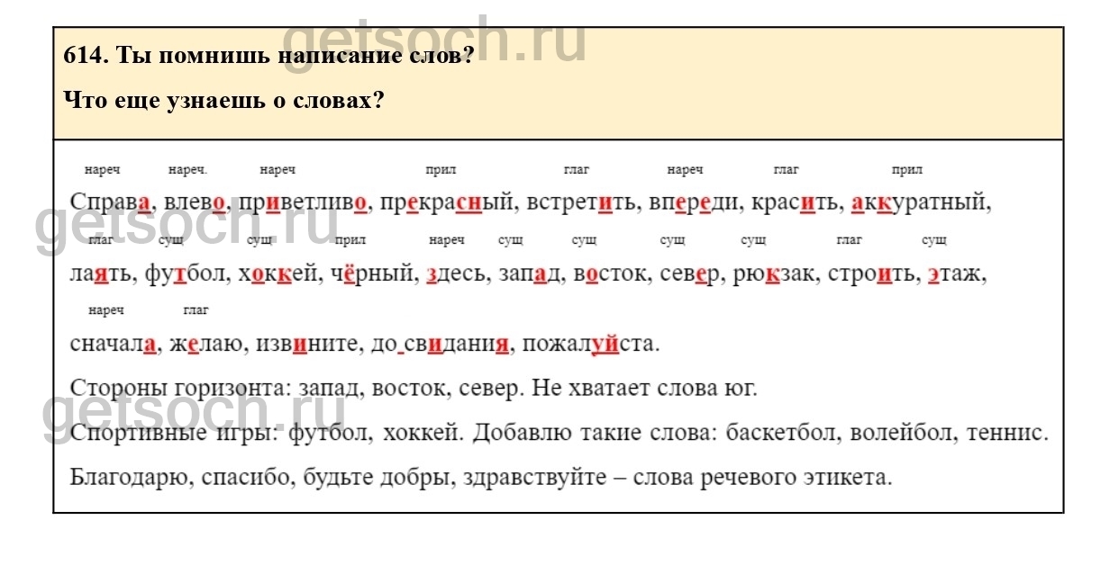 Рассмотрим ответы на Упражнение 614 из учебника по русскому языку для 4 класса Соловейчика