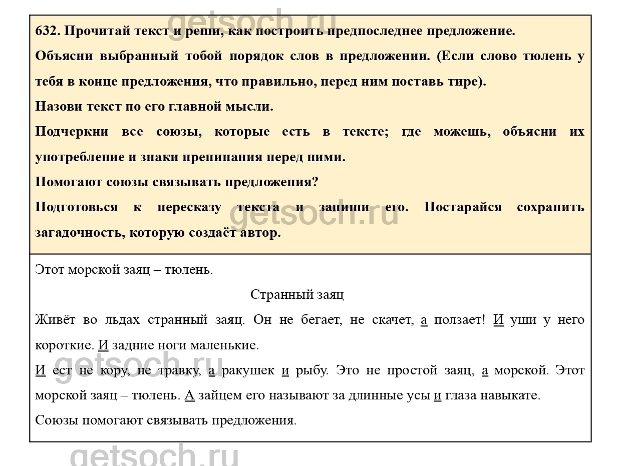 Рассмотрим ответы на Упражнение 632 из учебника по русскому языку для 4 класса Соловейчика