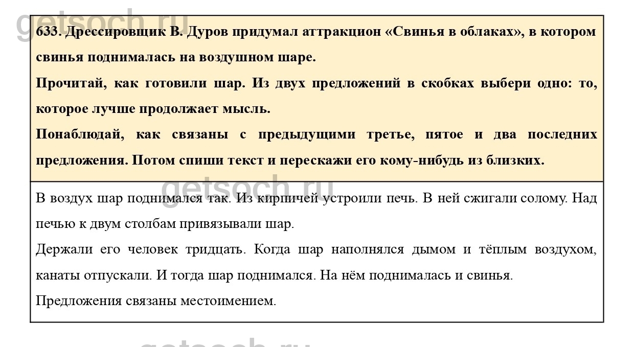 Рассмотрим ответы на Упражнение 633 из учебника по русскому языку для 4 класса Соловейчика