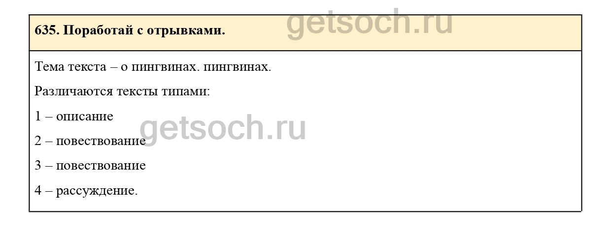 Рассмотрим ответы на Упражнение 635 из учебника по русскому языку для 4 класса Соловейчика