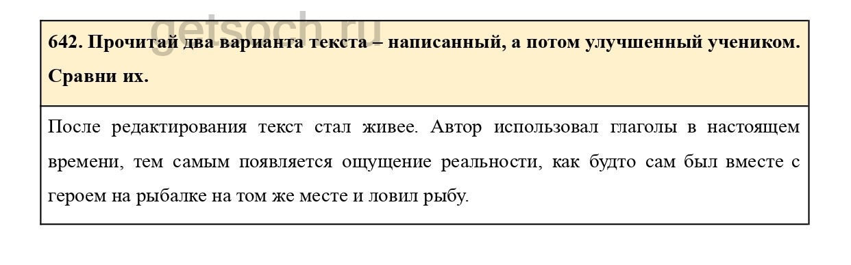 642. Прочитай два варианта текста – написанный, а потом улучшенный учеником.