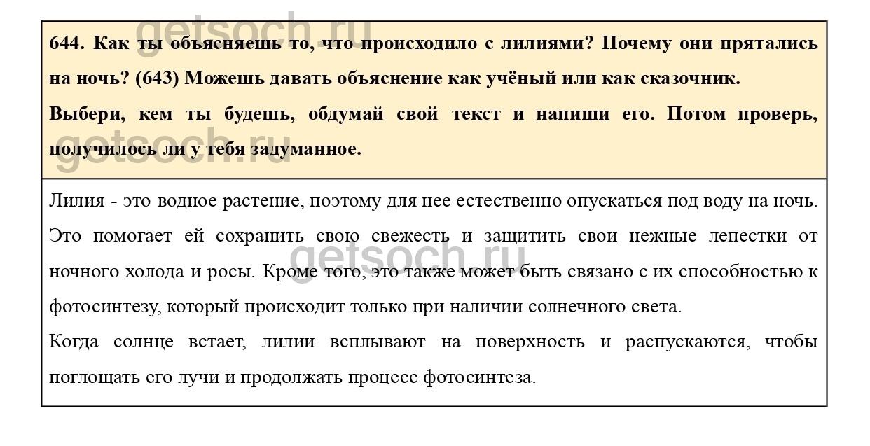 644. Как ты объясняешь то, что происходило с лилиями? Почему они прятались на ночь? (643) Можешь давать объяснение как учёный или как сказочник.
