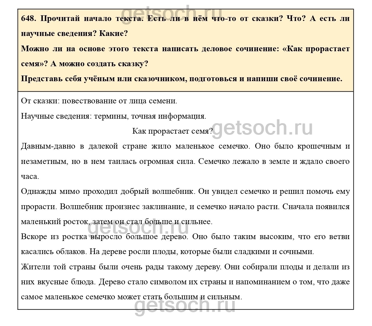 Рассмотрим ответы на Упражнение 648 из учебника по русскому языку для 4 класса Соловейчика