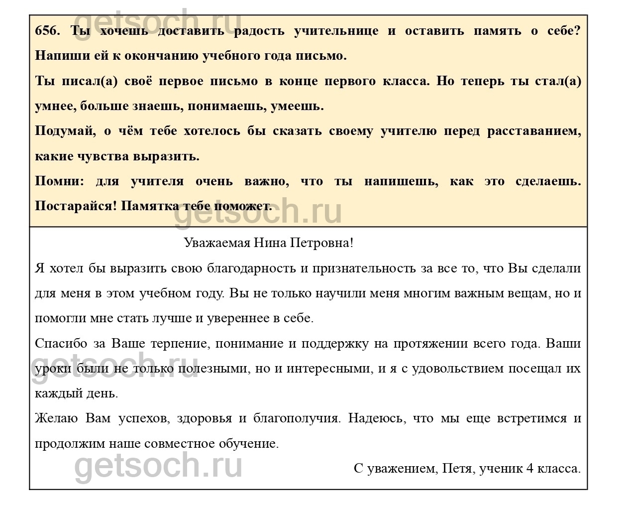 656. Ты хочешь доставить радость учительнице и оставить память о себе? Напиши ей к окончанию учебного года письмо.