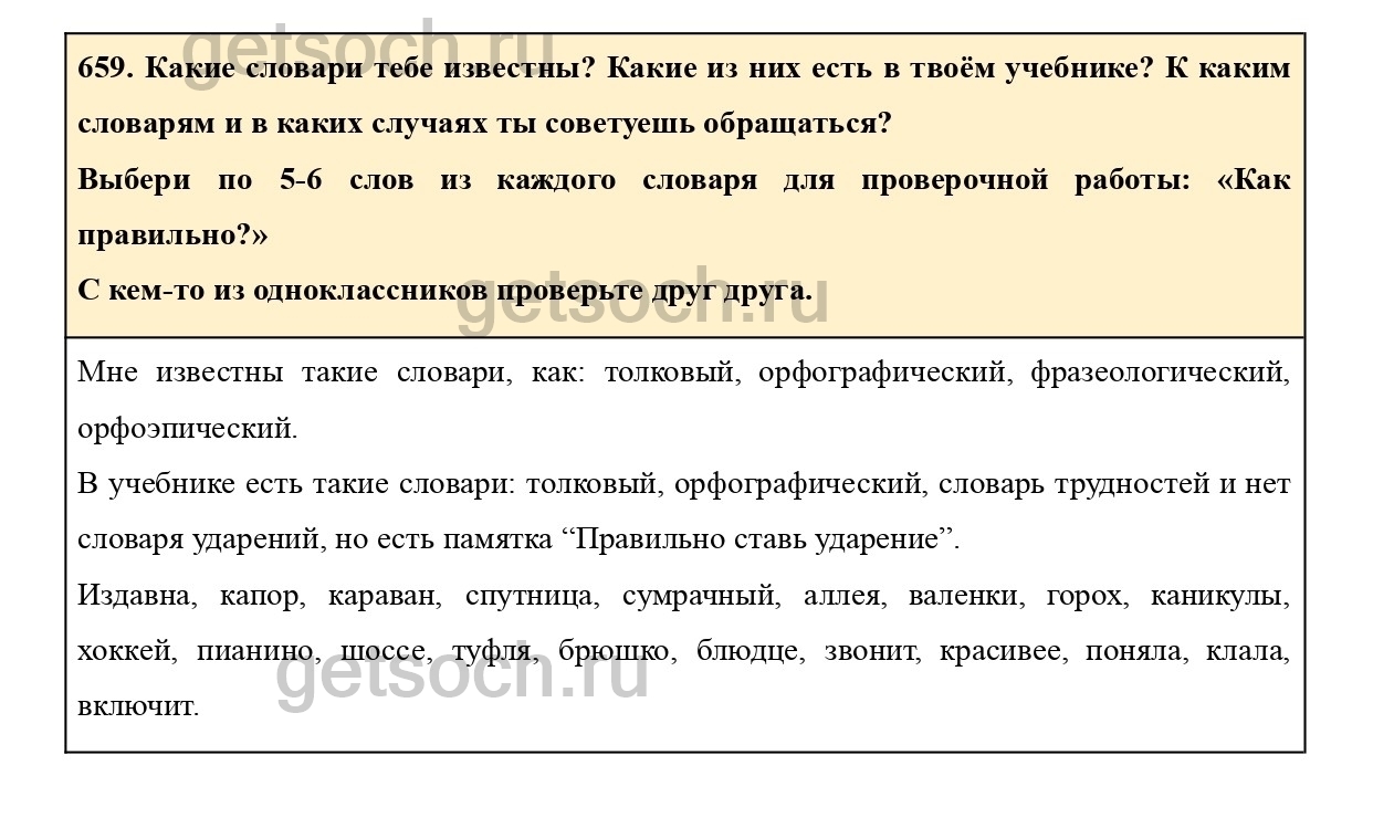 659. Какие словари тебе известны? Какие из них есть в твоём учебнике? К каким словарям и в каких случаях ты советуешь обращаться?