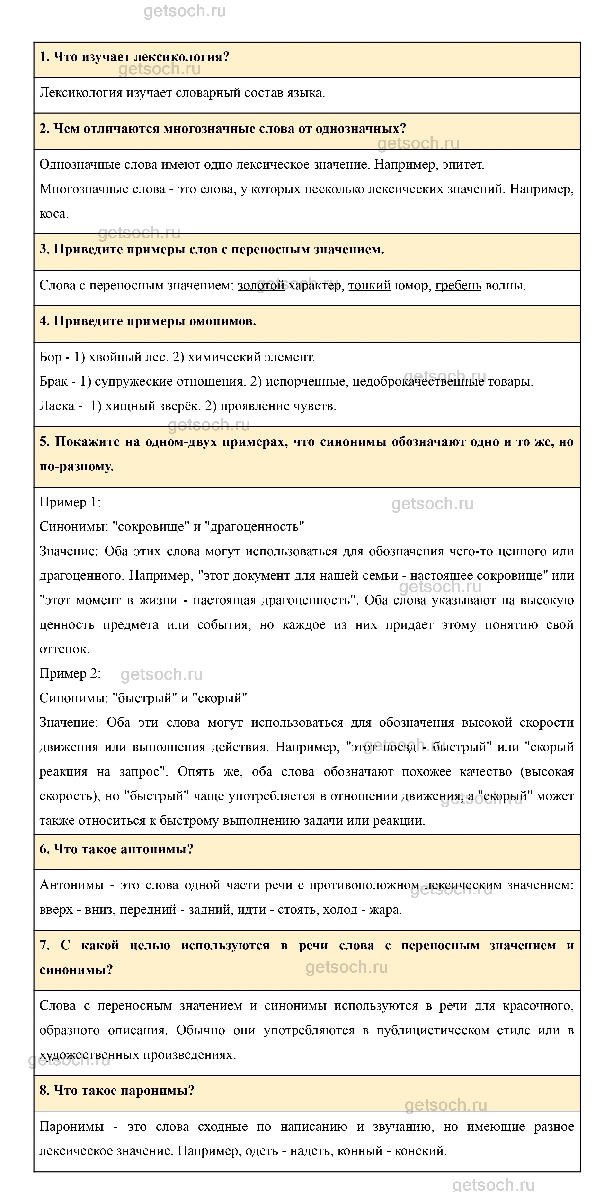 Рассмотрим ответы на Контрольные вопросы страница 165 из учебника по русскому языку для 5 класса Ладыженской
