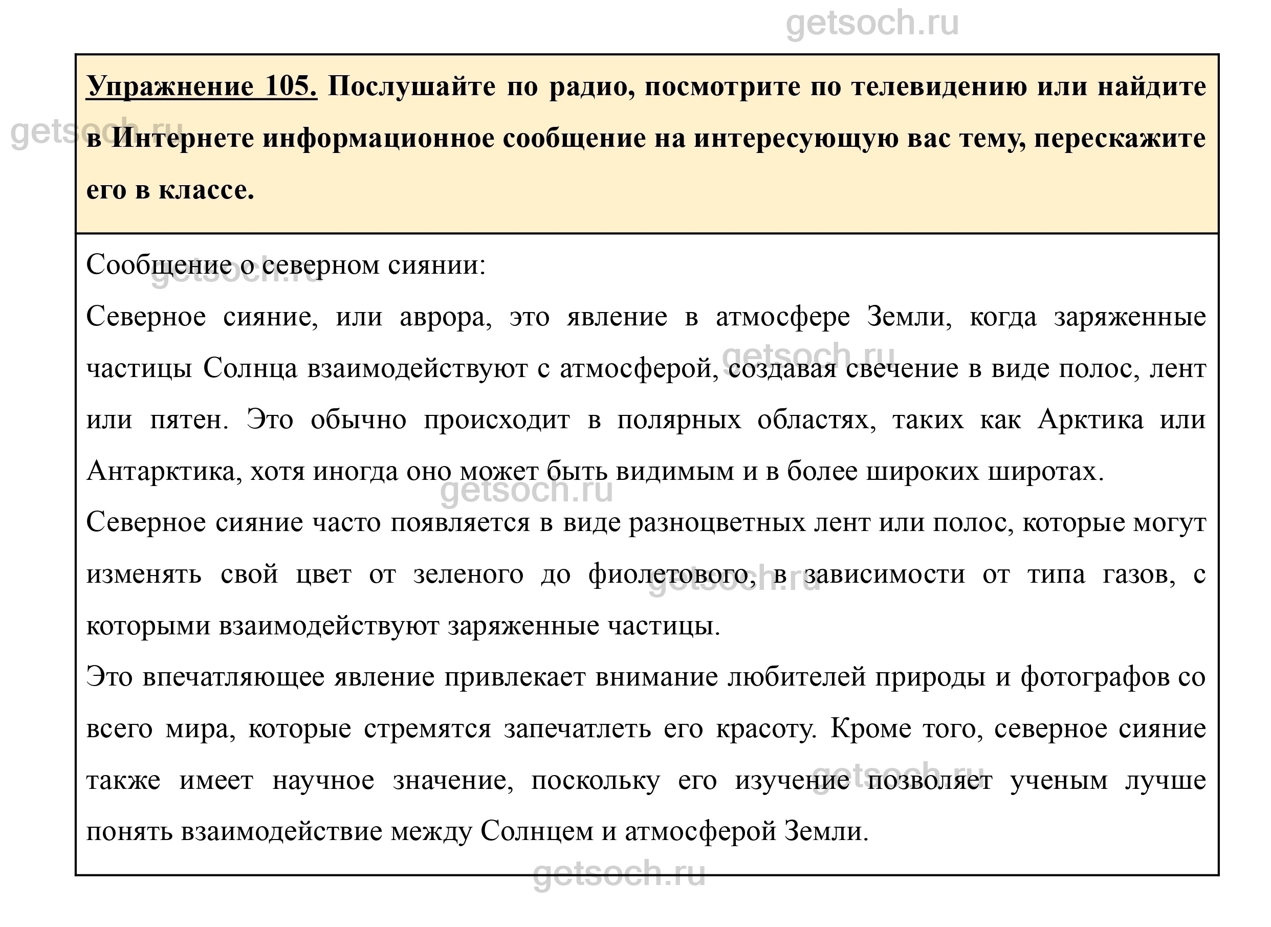 Рассмотрим ответы на Упражнение 105 из учебника по русскому языку для 5 класса Ладыженской
