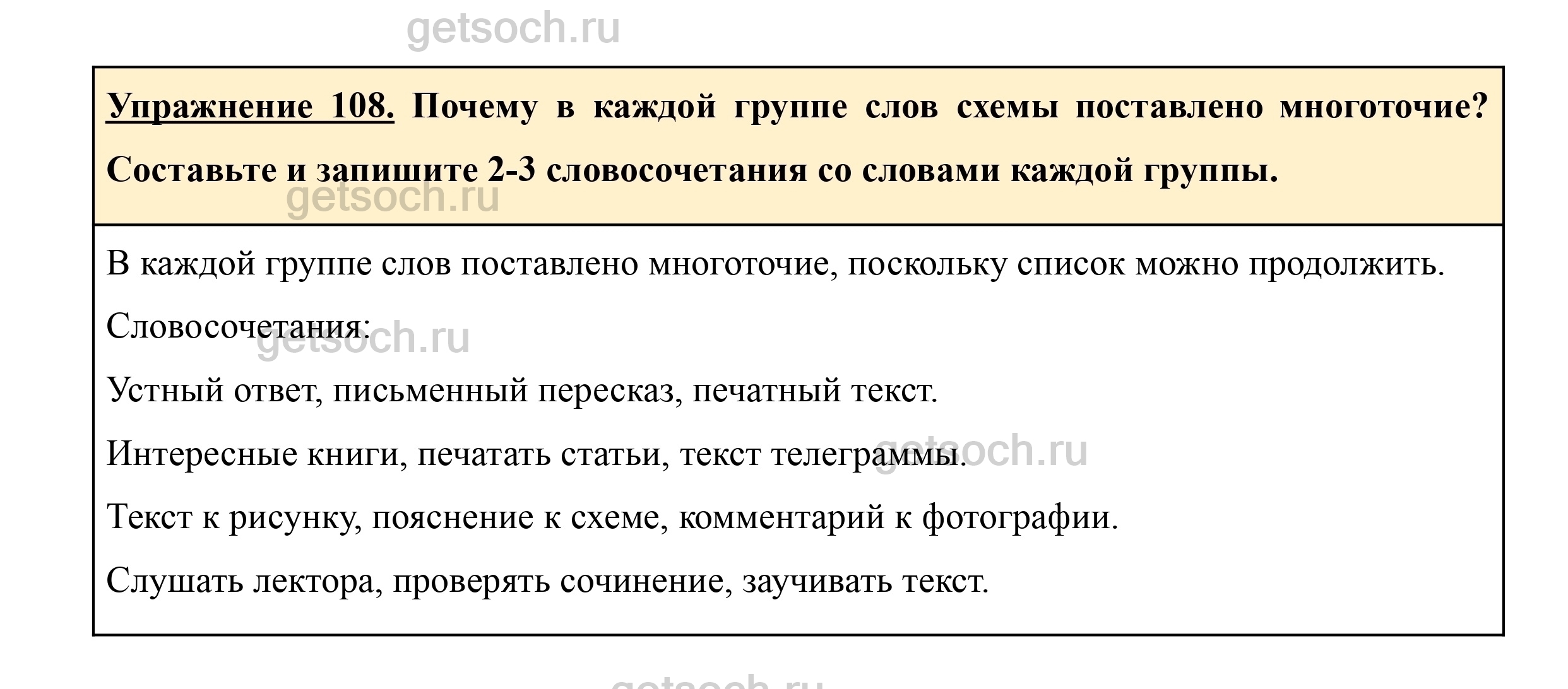 Рассмотрим ответы на Упражнение 108 из учебника по русскому языку для 5 класса Ладыженской