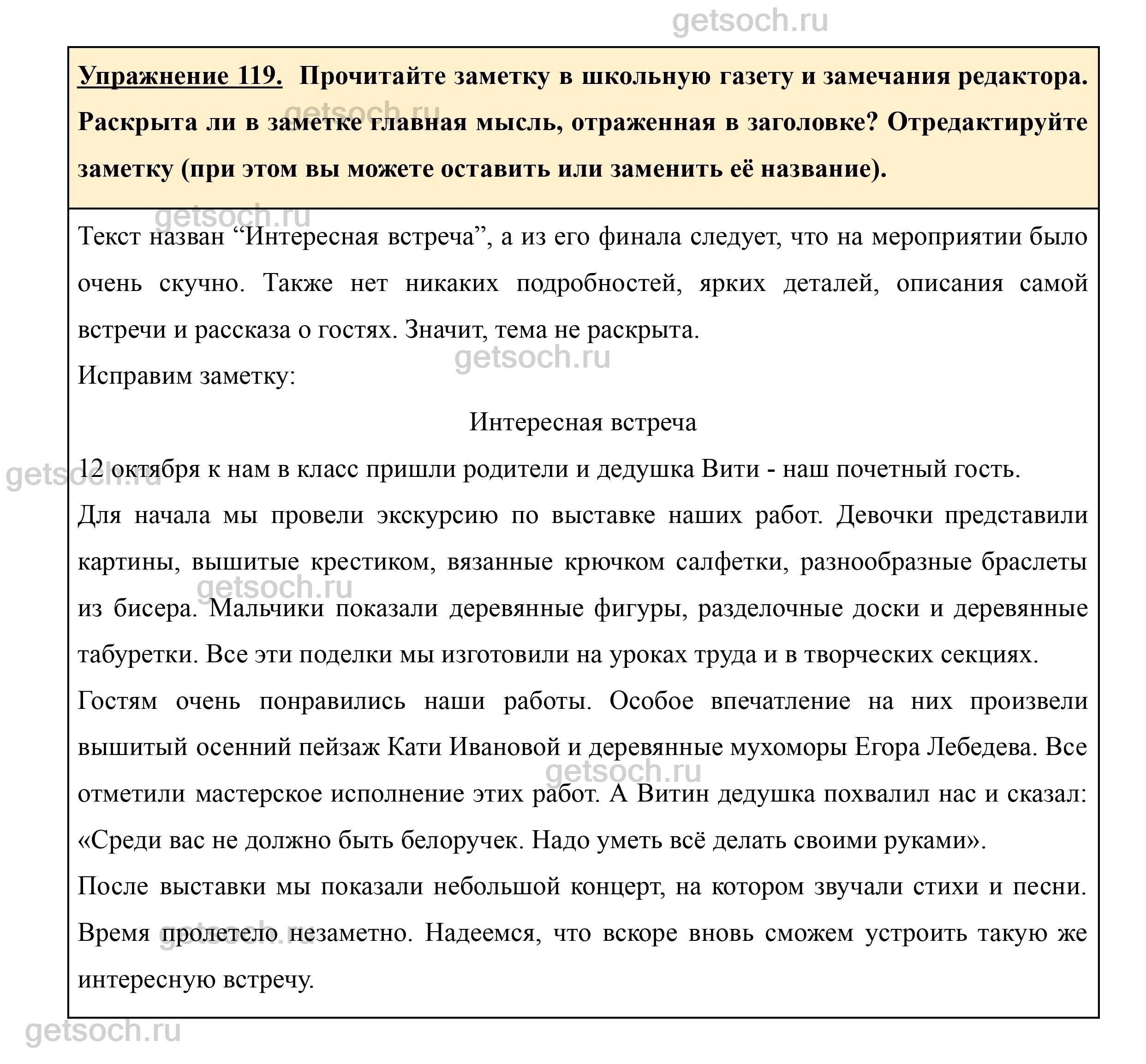 Рассмотрим ответы на Упражнение 119 из учебника по русскому языку для 5 класса Ладыженской