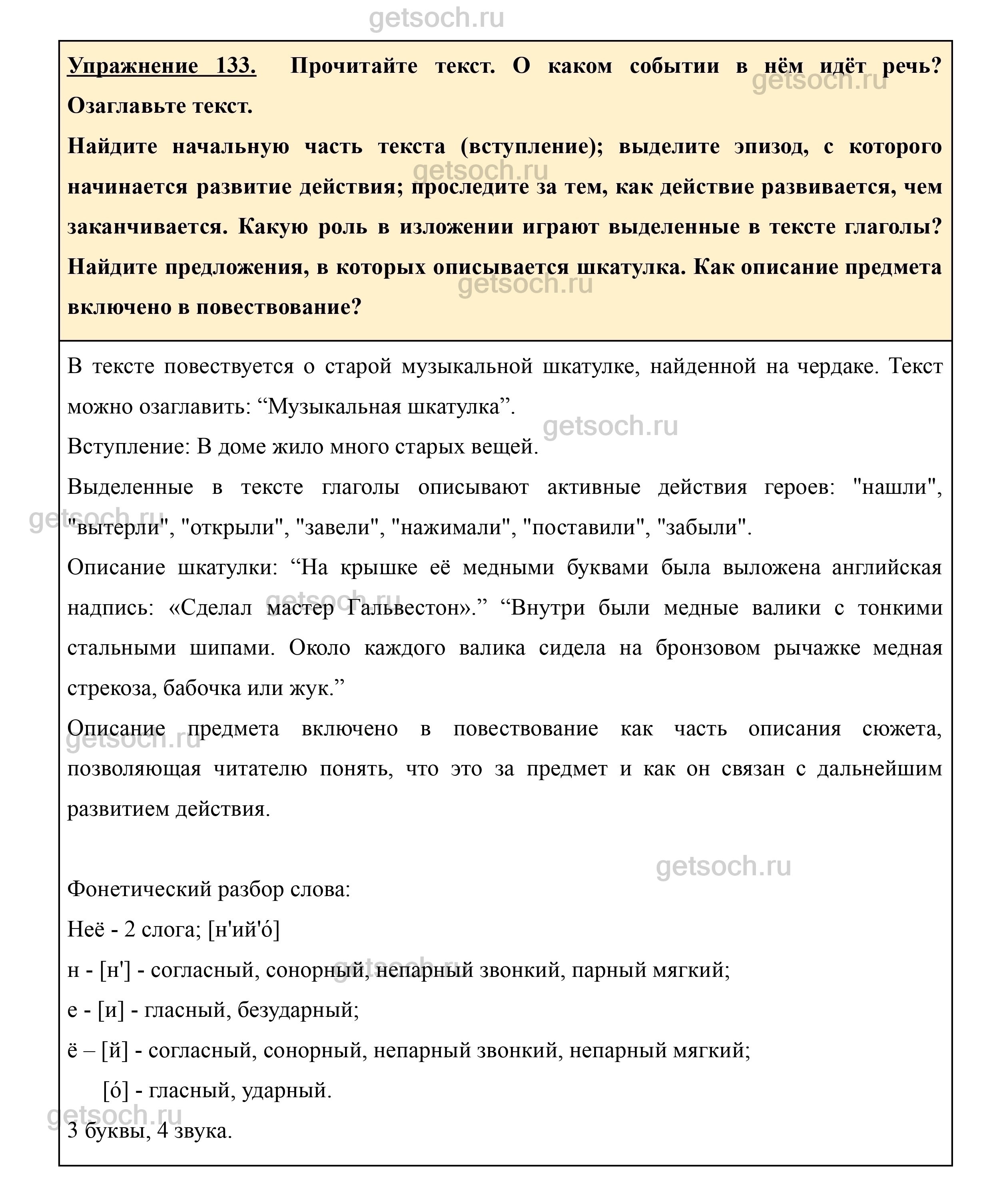 Рассмотрим ответы на Упражнение 133 из учебника по русскому языку для 5 класса Ладыженской