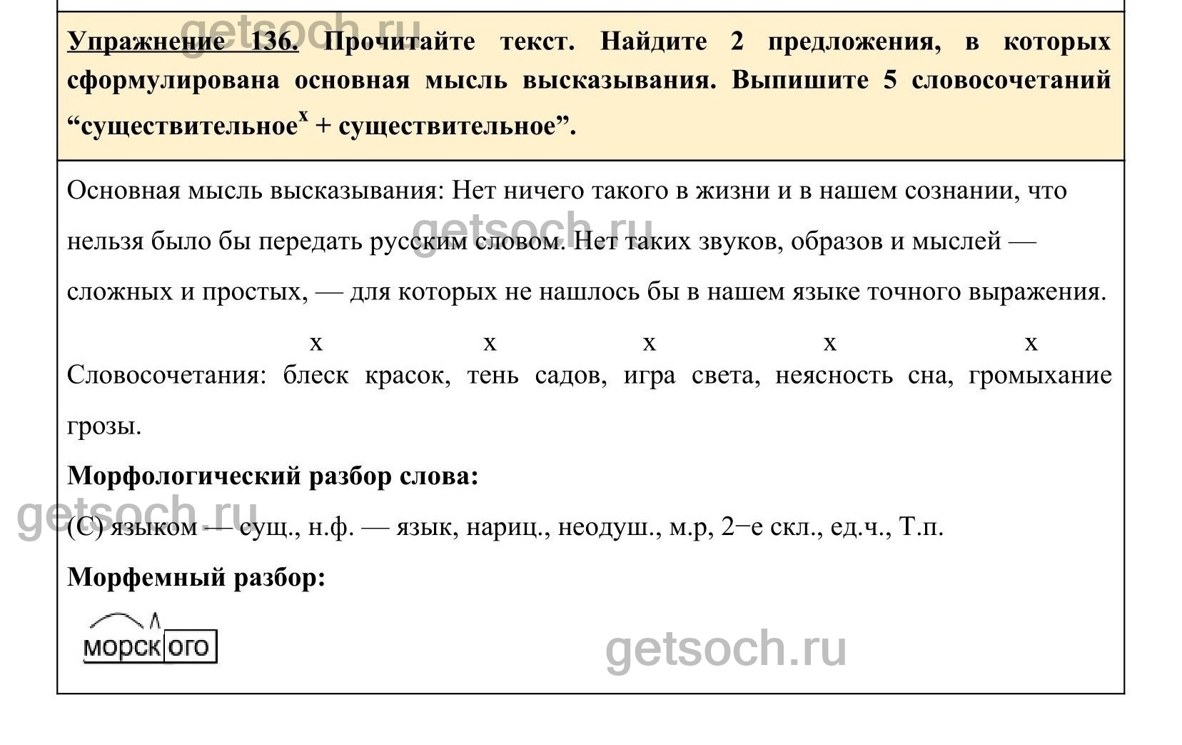 Рассмотрим ответы на Упражнение 136 из учебника по русскому языку для 5 класса Ладыженской